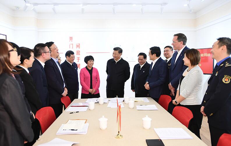 臨近傍晚,習近平來到長寧區(qū)虹橋街道古北市民中心考察調(diào)研。古北社區(qū)居住著來自50多個國家和地區(qū)的居民。習近平聽取社區(qū)開通社情民意直通車、服務基層群眾參與立法工作等情況介紹,并同正在參加立法意見征詢的社區(qū)居民代表親切交流。他強調(diào),你們這里是全國人大常委會建立的基層立法聯(lián)系點,你們立足社區(qū)實際,認真扎實開展工作,做了很多接地氣、聚民智的有益探索。人民代表大會制度是我國的根本政治制度,要堅持好、鞏固好、發(fā)展好,暢通民意反映渠道,豐富民主形式。