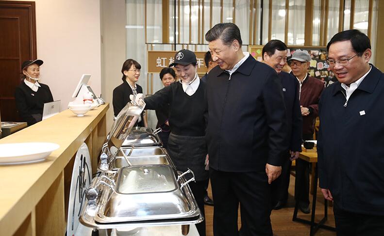 11月2日至3日,中共中央總書記、國家主席、中央軍委主席習近平在上??疾?。這是2日下午,習近平在長寧區(qū)虹橋街道古北市民中心老年助餐點考察,了解社區(qū)養(yǎng)老等便民服務情況。新華社記者 鞠鵬 攝
