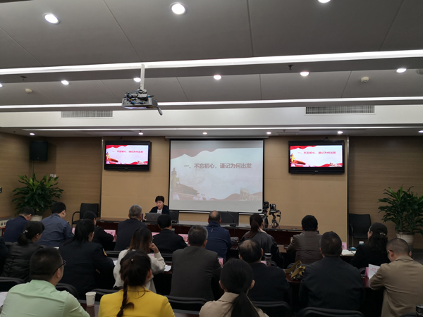 為深入推進(jìn)主題教育,提升調(diào)查研究實(shí)效,10月31日上午,市總工會(huì)開展“不忘初心、牢記使命”主題教育專題黨課。市總工會(huì)黨組書記、副主席房繼紅以“牢記初心使命、主動(dòng)擔(dān)當(dāng)作為”為主題作專題黨課。市委第八巡回指導(dǎo)組組長(zhǎng)劉寶剛出席,市總工會(huì)黨組成員,市總工會(huì)機(jī)關(guān)及所屬二級(jí)機(jī)構(gòu)全體黨員,部分離退休黨員,縣市區(qū)總工會(huì)、開發(fā)區(qū)和阜合園區(qū)工會(huì)主要負(fù)責(zé)人,市直部分勞模及基層工會(huì)黨員干部代表參加。