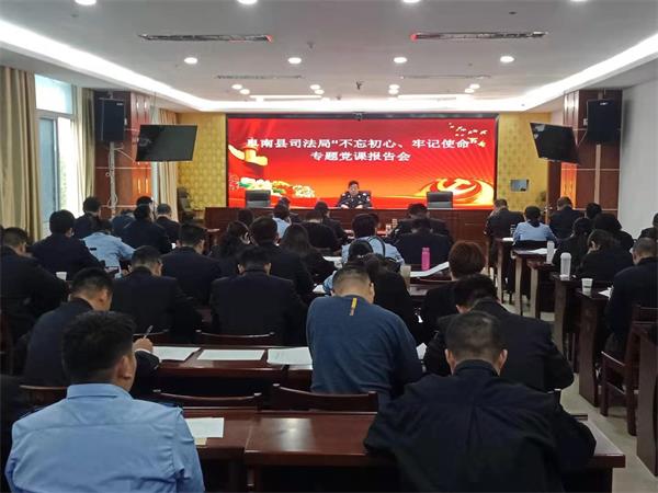 近日,阜南縣司法局舉辦“不忘初心、牢記使命”主題教育專題黨課報告會,報告會由局黨組書記、局長丁傳珠主持并授課,全體司法行政系統(tǒng)干部職工近120余人參加會議。