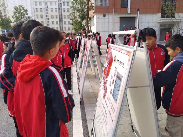 活動(dòng)第三站來(lái)到了清河中心校,利用課外時(shí)間在校園里組織同學(xué)們觀看本次展覽,旨在通過(guò)本次活動(dòng)為孩子們上一堂別開(kāi)生面的愛(ài)國(guó)主義教育課程。同學(xué)們對(duì)于圖片上的個(gè)人事跡不時(shí)發(fā)出驚嘆聲,紛紛表示要銘記歷史、踏實(shí)學(xué)業(yè),日后也以實(shí)際行動(dòng)報(bào)效祖國(guó)。