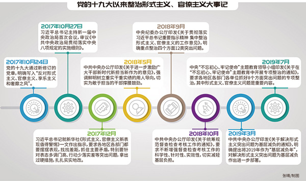 我們之所以用“重”和“輕”的對比來突出概括形式主義、官僚主義的特征,確實是深感一些干部在面臨利益取舍時,做出了畸輕畸重的選擇,也使得形式主義、官僚主義“鎧甲重重”,具有一定的迷惑性。為此,省委把形式主義、官僚主義的這些癥狀梳理出來,形成《關(guān)于形式主義、官僚主義突出問題的檢視報告》,印發(fā)典型案例選編,結(jié)合“不忘初心、牢記使命”主題教育開展集中研討、專題剖析,在全省引起強烈反響。大家深刻認識到,形式主義、官僚主義是阻礙黨中央決策部署的“攔路虎”,消解黨中央權(quán)威和黨的集中統(tǒng)一領(lǐng)導,影響我國制度優(yōu)勢的發(fā)揮和治理效能的提升;是黨群干群關(guān)系的“隔離墻”,嚴重侵害人民群眾的根本利益,侵蝕黨的群眾基礎(chǔ)。說到底,形式主義、官僚主義背離黨的宗旨,是典型的作風頑疾、嚴重的政治腐敗,任其發(fā)展下去,將會使我們黨失去根基、失去血脈、失去力量。因此,必須站在加強政治建設(shè)的高度,對形式主義、官僚主義出重拳、下重手,以深挖細究的態(tài)度“找病源”,以堅定堅決的勇氣“挖病灶”,以堅忍不拔的韌勁“除病根”。