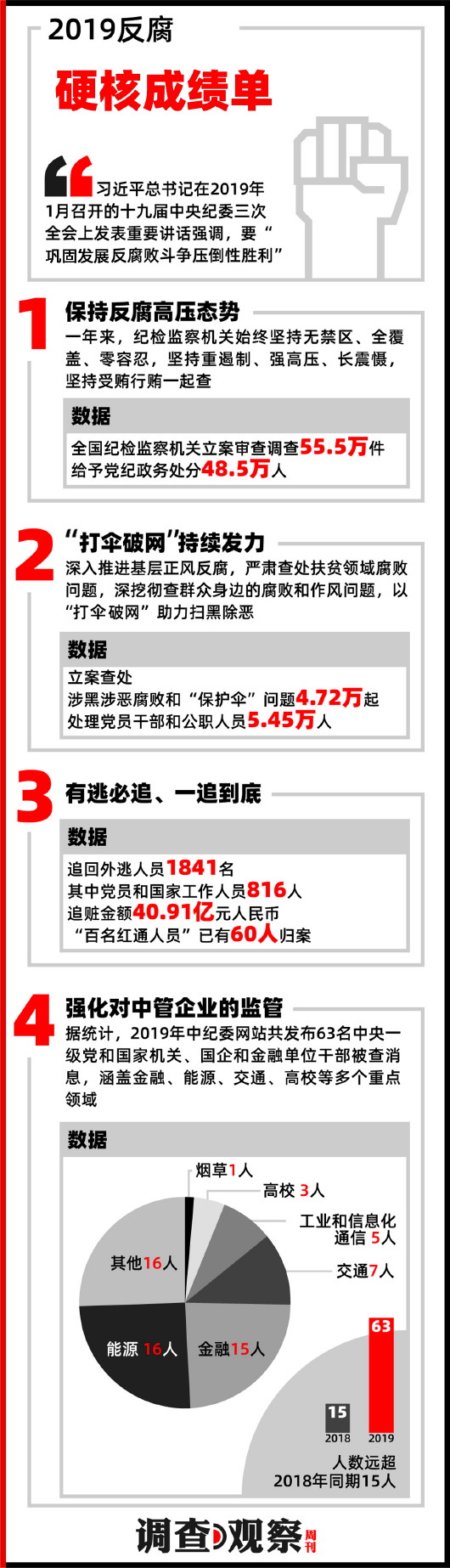 據(jù)統(tǒng)計(jì),2019年12月,中央紀(jì)委國(guó)家監(jiān)委網(wǎng)站共通報(bào)近80名干部案件信息,其中中管干部4名;中央一級(jí)黨和國(guó)家機(jī)關(guān)、國(guó)企和金融單位干部共21人,人數(shù)遠(yuǎn)超11月份,創(chuàng)2019年新高。此外,12月還查處了53名省管干部,環(huán)比也有所增加。