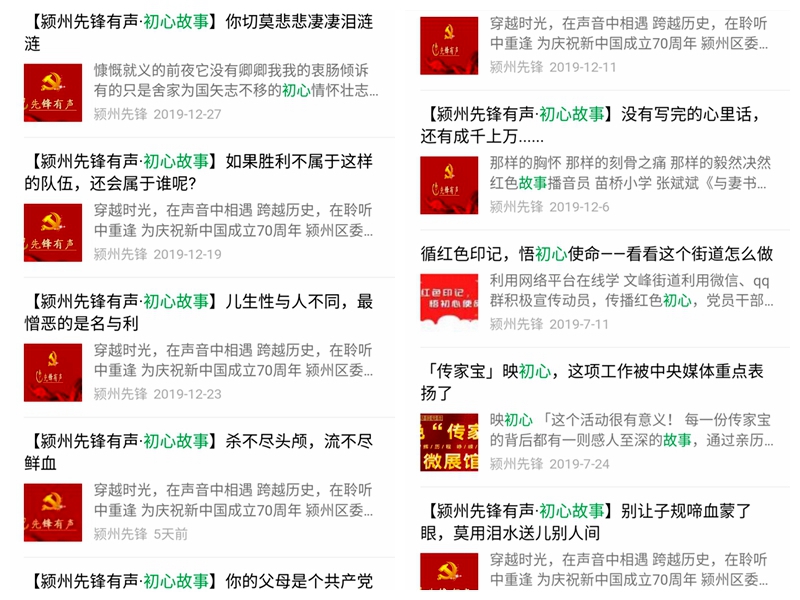 四是初心故事“遠(yuǎn)航”。歷史是最好的教科書(shū),也是最好的營(yíng)養(yǎng)劑。為引導(dǎo)全區(qū)廣大黨員學(xué)習(xí)好黨史、國(guó)史、改革開(kāi)放史,使廣大黨員牢記紅色政權(quán)是從哪里來(lái)的、新中國(guó)是怎么建立起來(lái)的,潁州區(qū)委組織部運(yùn)用新媒體在“潁州先鋒”微信公眾號(hào)策劃推出《潁州先鋒有聲·初心故事》專(zhuān)欄節(jié)目。每期約請(qǐng)全區(qū)優(yōu)秀黨員干部、一線(xiàn)教師和學(xué)生代表誦讀《豐碑》《與妻書(shū)》《趙一曼給兒子的信》等具有代表性的紅色經(jīng)典書(shū)信、故事、詩(shī)詞,書(shū)寫(xiě)學(xué)習(xí)感悟,開(kāi)展網(wǎng)上愛(ài)國(guó)主義教育。帶領(lǐng)潁州區(qū)廣大黨員干群學(xué)習(xí)紅色精神和先進(jìn)思想,繼承革命傳統(tǒng),傳承紅色基因。