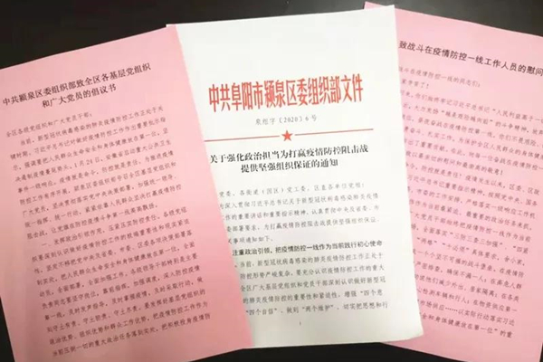 聞令而動,主動扛起防控責(zé)任。疫情就是命令,防控就是責(zé)任!新型冠狀病毒感染的肺炎疫情防控戰(zhàn)役打響后,潁泉區(qū)組織系統(tǒng)廣大黨員干部堅(jiān)決貫徹落實(shí)習(xí)近平總書記重要指示精神,區(qū)委組織部按照區(qū)委部署,第一時間印發(fā)了《致全區(qū)各基層黨組織和廣大黨員的倡議書》,號召全區(qū)基層黨組織和廣大黨員,堅(jiān)決貫徹落實(shí)黨中央決策部署,主動扛起防控責(zé)任,加強(qiáng)統(tǒng)一領(lǐng)導(dǎo)、統(tǒng)一指揮、統(tǒng)一行動,緊緊依靠人民群眾堅(jiān)決打贏疫情防控阻擊戰(zhàn),讓黨旗在防控疫情斗爭第一線高高飄揚(yáng)。隨后,根據(jù)防控工作需要,又先后印發(fā)了《關(guān)于強(qiáng)化政治擔(dān)當(dāng),為打贏疫情防控阻擊戰(zhàn)提供堅(jiān)強(qiáng)組織保證的通知》和《致戰(zhàn)斗在疫情防控一線工作人員的慰問信》,給全區(qū)基層黨組織和廣大黨員以鼓舞和鞭策。