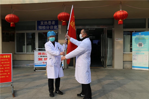為全面貫徹落實(shí)習(xí)近平總書記對(duì)做好新型冠狀病毒感染的肺炎疫情防控工作的重要指示,按照上級(jí)黨委疫情防控工作的部署要求。2月3日,中鐵阜陽中心醫(yī)院黨總支在西區(qū)住院部門口,舉行戰(zhàn)疫黨員突擊隊(duì)授旗儀式,醫(yī)院黨總支副書記、院長張桂紅主持儀式,黨總支領(lǐng)導(dǎo)班子、全體黨員參加儀式。首先,醫(yī)院黨總支書記唐勤輝,宣讀成立戰(zhàn)疫黨員突擊隊(duì)相關(guān)文件并作動(dòng)員講話,一是要求各黨支部要充分發(fā)揮戰(zhàn)斗堡壘作用,全體黨員要發(fā)揮黨員先鋒模范作用,沖鋒在一線、戰(zhàn)斗在一線,以對(duì)黨和人民群眾高度負(fù)責(zé)的態(tài)度,敢于擔(dān)當(dāng)、勇于作為,堅(jiān)決打贏疫情防控阻擊戰(zhàn)。二是要求全體黨員要在醫(yī)院最需要的時(shí)候,沖在臨床一線,要在醫(yī)院設(shè)立的黨員先鋒崗、兩個(gè)院區(qū)黨員志愿服務(wù)點(diǎn)盡職盡責(zé),完成防控戰(zhàn)疫各項(xiàng)任務(wù)。三是要求全體黨員切實(shí)扛起疫情防控政治責(zé)任,主動(dòng)擔(dān)當(dāng)、認(rèn)真履職,全力保障阜城人民群眾生命安全和身體健康。