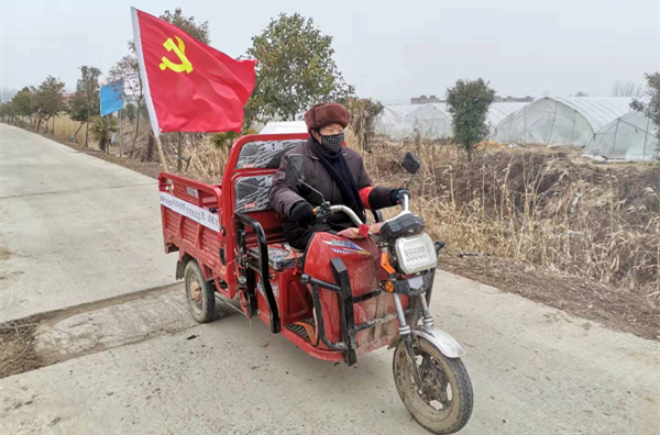 “戴口罩、勤洗手,測體溫、勤消毒,少聚餐、勤通風(fēng)!”每天一大早,十八里鋪鎮(zhèn)桅桿村78歲的黨員李家平騎上三輪車,帶著音響,冒著寒冷的北風(fēng)在村中進(jìn)行防疫宣傳。自防疫工作開展以來,他每天奔走在鄉(xiāng)間道路上,宣傳防疫知識,勸導(dǎo)村民少一次聚會,少一份感染的可能。