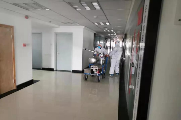 海容物業(yè)有限公司通過各種渠道購買消毒用品,每天對(duì)樓層,廣場、車庫等進(jìn)行無死角的消毒2次以上。面對(duì)艱巨的任務(wù),一線工作人員齊心協(xié)力,團(tuán)結(jié)一致,在疫情面前,共同維護(hù)大廈的安全。
