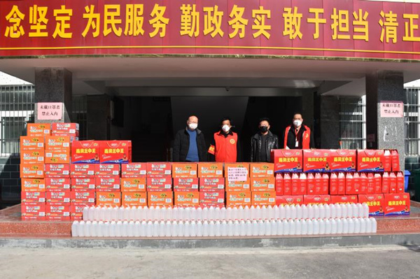 鏡頭二:出物??箵粜滦凸跔畈《痉窝滓咔閼?zhàn)斗中,社會(huì)各界多方籌備醫(yī)用和生活物資,為抗疫一線提供了堅(jiān)實(shí)的物資保障。愛(ài)心企業(yè)安徽馬氏食品、阜陽(yáng)啟明飲料廠、金陽(yáng)光工貿(mào)、頂大食品、西湖食品5家企業(yè)捐贈(zèng)食品等防控應(yīng)急物資百余件。伍明鎮(zhèn)章集村23名村民,自發(fā)捐贈(zèng)金額1810元,物資20箱方便面、10箱牛奶和2箱奶茶送到抗疫一線。阜陽(yáng)育才學(xué)校校長(zhǎng)李龍主動(dòng)購(gòu)買100件棉大衣送到行流鎮(zhèn)抗疫一線人員手中,讓他們感受到“寒冬的溫暖”。聞集鎮(zhèn)火營(yíng)果蔬黨支部、鴻福科技黨支部組織在種植草莓的群眾、客商中宣傳防疫,并向阜陽(yáng)市人民醫(yī)院、二院、三院、五院、六院捐贈(zèng)草莓3500斤;千盛新型建材黨支部累計(jì)捐贈(zèng)84消毒液388桶,酒精158桶;牧原黨支部累計(jì)捐贈(zèng)口罩11750只,防護(hù)服148套,84消毒液5桶,酒精6桶,噴壺20個(gè),水稻20斤,掛面40斤,果汁20箱;萬(wàn)盛黨支部累計(jì)捐贈(zèng)84消毒液132桶。