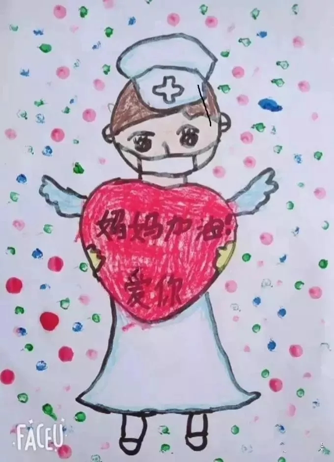 界首市人民醫(yī)院感染科護(hù)士范利杰主動請戰(zhàn)到阜陽市第二人民醫(yī)院進(jìn)行援助,范利杰的丈夫也是一名基層的醫(yī)務(wù)人員,每天堅守在防控疫情的第一線,根本沒時間回家。他們把5歲的女兒交給老人看護(hù),夫妻二人在各自的崗位戰(zhàn)疫情。范利杰的媽媽說“我的女兒到二院支援,我很支持她,給她看孩子,沒有后顧之憂,叫她安心地工作。”范利杰5歲的女兒雖然也對母親很不舍,但懂事的她還是乖乖聽話,并畫了一幅畫為母親加油。