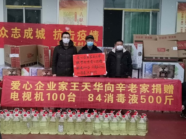 愛心涌動,源源不斷。安徽柏聯(lián)電子科技有限公司董事長潘昌明,向臨泉廬陽現(xiàn)代產(chǎn)業(yè)園捐贈KN95口罩1000個一次性醫(yī)用口罩2000個。鑫林科技有限公司董事長王天華,向鲖城鎮(zhèn)辛老家村定點(diǎn)捐贈電視機(jī)100臺,84消毒液500斤、方便面30箱,并說“村里一些老人在家無事習(xí)慣性外出,送臺電視機(jī)可以在家看看解悶,也算是幫助疫情防控助一份力?!边@樣的暖心事例在臨泉大地上隨處可見。一筆筆捐贈匯聚成一股股暖流,凝聚成支援疫情防控的強(qiáng)大力量。