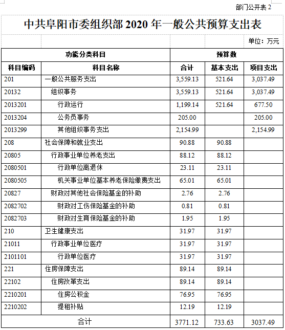 2.中共阜陽市委組織部2020年一般公共預(yù)算支出表