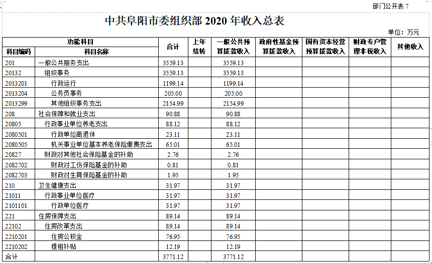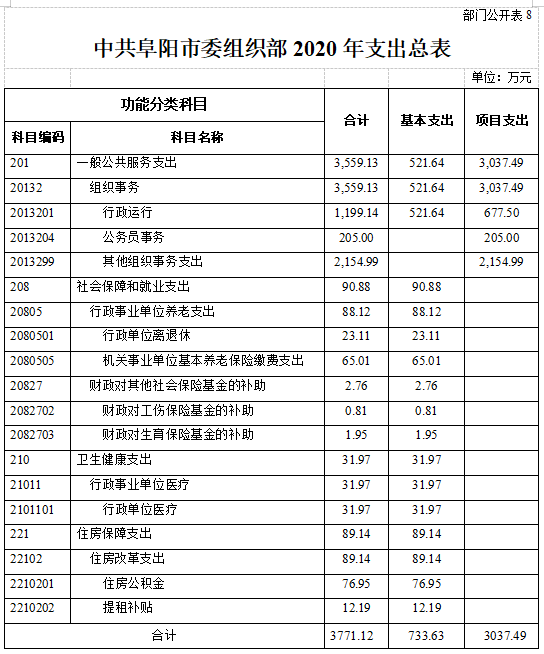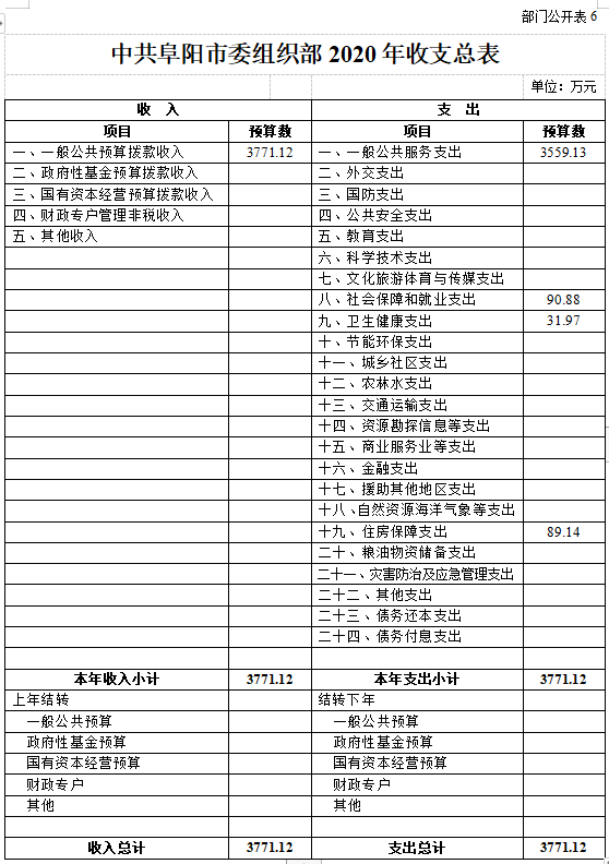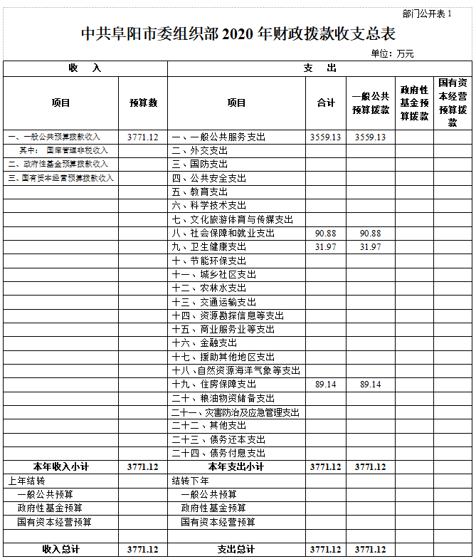 1.中共阜陽市委組織部2020年財(cái)政撥款收支總表