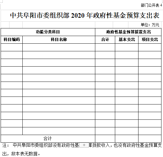 4.中共阜陽市委組織部2020年政府性基金預(yù)算支出表