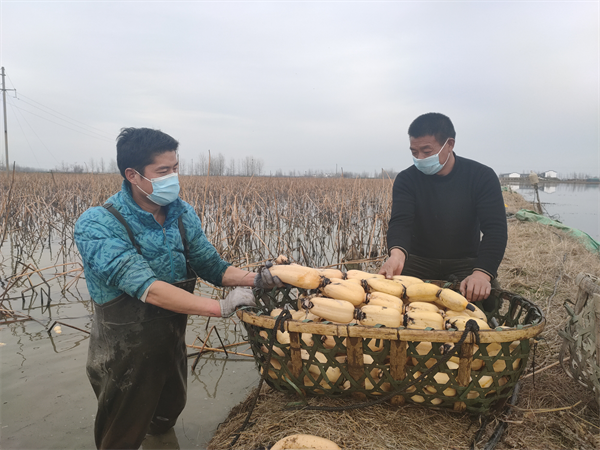 據(jù)悉,僅2月19日一天,瑾煜農產品加工有限公司采摘蓮藕近七千斤,營業(yè)收入兩萬多元。