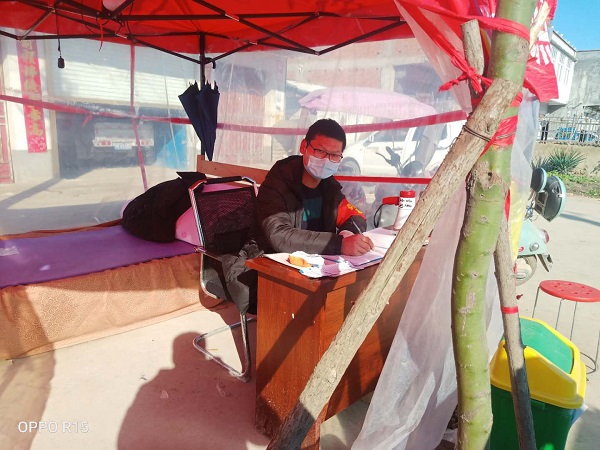 李明明為迎仙鎮(zhèn)迎北社區(qū)潘莊自然村居民,2017年9月入伍,火箭軍現(xiàn)役軍人,同時他也是一名黨員,現(xiàn)就讀于中國人民解放軍戰(zhàn)略支援部隊信息工程大學(xué),正在休探親假的他在得知當(dāng)前迎仙鎮(zhèn)在各村莊,社區(qū)的主要進(jìn)出口設(shè)立了疫情防控檢測點(diǎn),24小時都需要值班,除此之外還要入戶排查,消毒,量體溫,登記等,人員很是緊張短缺,他隨即向迎北社區(qū)防疫指揮部申請,加入防控卡口執(zhí)勤。申請被批準(zhǔn)后,李明明每天6點(diǎn)30分準(zhǔn)時來到社區(qū)卡點(diǎn),準(zhǔn)備好出入人員登記簿、消毒工具、體溫計、防護(hù)手套、備用口罩等用品,便開始了一天的緊張工作,他主要負(fù)責(zé)出入人員登記工作,一天接觸到很多人員,十分的危險,還會經(jīng)常遇到不理解的群眾埋怨,他總是耐心地做好解釋勸導(dǎo)工作,宣傳疫情防控知識,“這個特殊時期,我們要聽從政府的安排,都是為了你和你的家人與我們社區(qū)的安全,人人都有義務(wù)抗擊病毒,請大家忍耐幾天克服一下,一切都會好起來的,相信我們的國家一定能戰(zhàn)勝疫情。