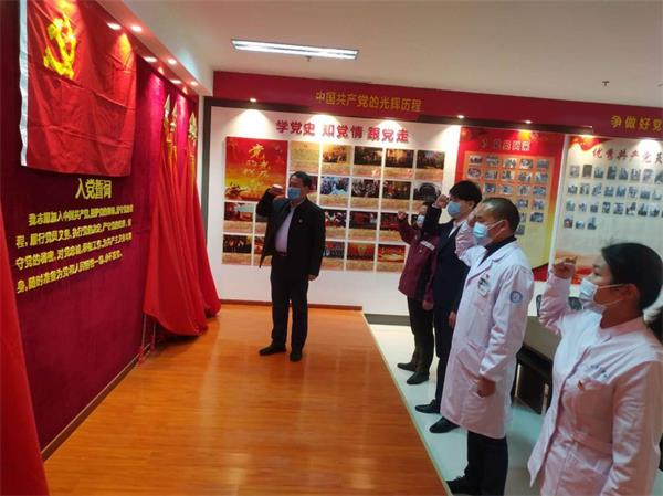 阜南縣人民醫(yī)院外科黨支部根據(jù)劉秋艷以往的表現(xiàn),向武漢方艙醫(yī)院了解劉秋艷在一線的表現(xiàn)情況,并征求了方艙醫(yī)院的意見,于2月28日研究,接收其為預(yù)備黨員,3月6日,劉秋艷在武漢駐地進(jìn)行了她的入黨宣誓。