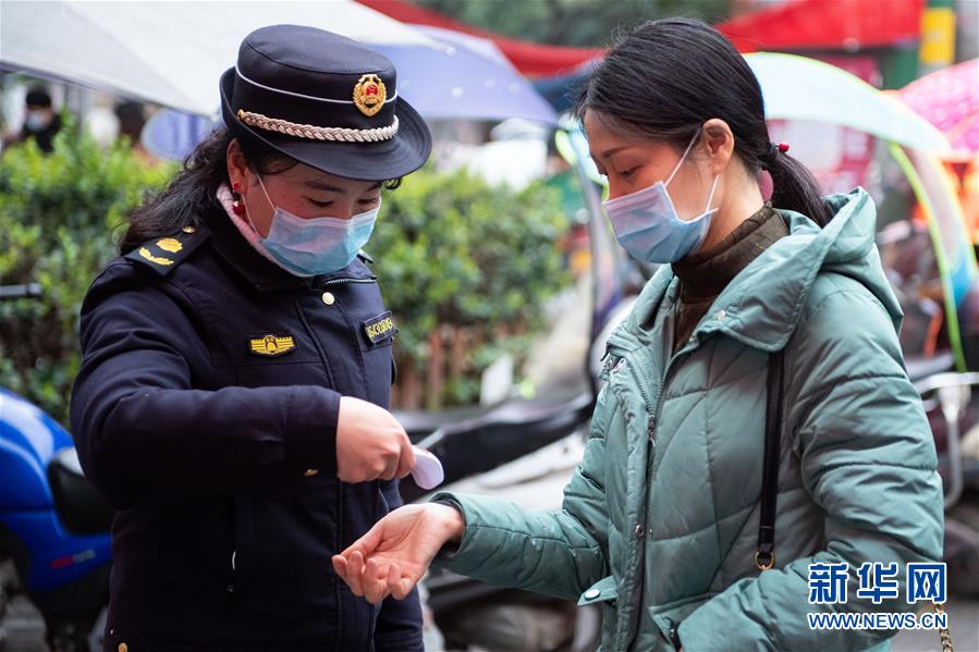3月4日,在湖南省株洲市淥口區(qū)向陽(yáng)農(nóng)貿(mào)市場(chǎng)監(jiān)測(cè)點(diǎn),工作人員為入場(chǎng)人員測(cè)量體溫。新華社發(fā)(陳思汗攝)