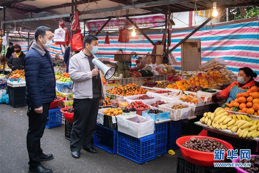 3月4日,在湖南省株洲市淥口區(qū)向陽(yáng)農(nóng)貿(mào)市場(chǎng),工作人員在宣傳防疫知識(shí)。新華社發(fā)(陳思汗攝)