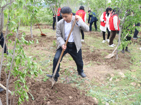 在植樹活動(dòng)中,黨員們分工協(xié)作,互幫互助,有的揮鍬挖坑,有的扶苗填土,有的培土澆水,個(gè)個(gè)精神飽滿,熱情高漲。經(jīng)過近兩個(gè)小時(shí)的辛勤勞作,一片新栽的櫻花樹迎風(fēng)挺立,展現(xiàn)勃勃生機(jī)。