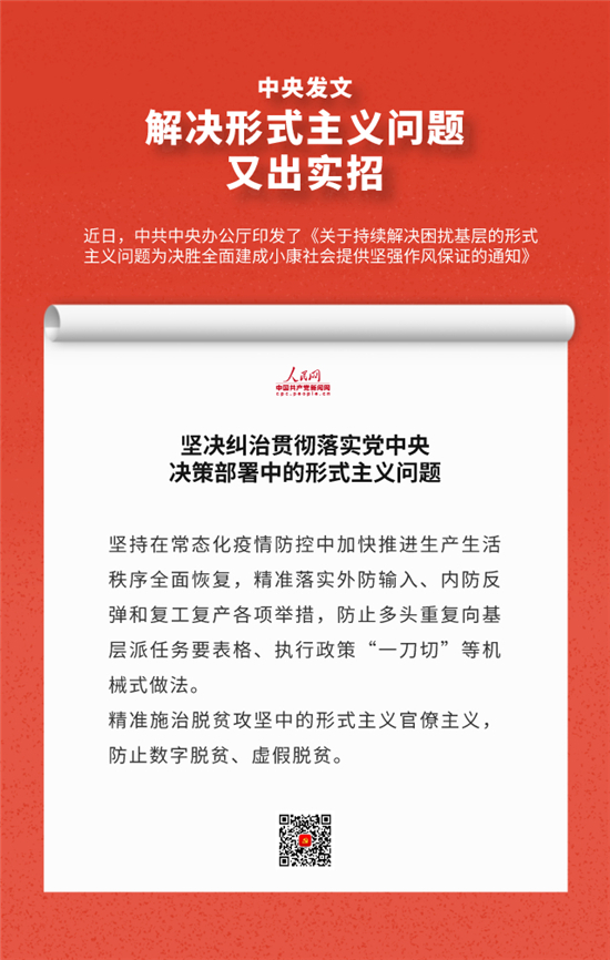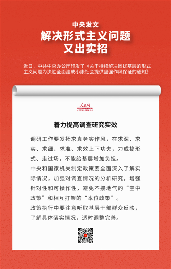 編者按:近日,中辦印發(fā)《關(guān)于持續(xù)解決困擾基層的形式主義問題為決勝全面建成小康社會(huì)提供堅(jiān)強(qiáng)作風(fēng)保證的通知》,通知要求牢固樹立正確政績觀,始終牢記人民利益高于一切,切實(shí)把對(duì)上負(fù)責(zé)與對(duì)下負(fù)責(zé)統(tǒng)一起來,決不做自以為領(lǐng)導(dǎo)滿意卻讓群眾失望的蠢事。