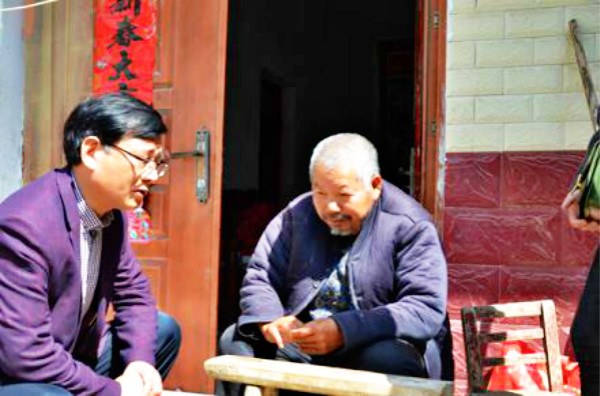 隨后,調(diào)研組步行走到劉明忠家,寬敞的院子里,沖門坐著一位老人,目光呆滯地曬著太陽(yáng),嘴角流著口水。旁邊有兩個(gè)婦女邊坐針線邊聊天。聽(tīng)到村部進(jìn)門,一老婦忙站起來(lái)招呼來(lái)人。當(dāng)聽(tīng)到縣殘聯(lián)領(lǐng)導(dǎo)親自上門服務(wù),感動(dòng)得不知說(shuō)什么好。鮑學(xué)峰走近劉明忠老人,俯下身子問(wèn)他多大年紀(jì)了?哪年得的腦梗?見(jiàn)老人沒(méi)有反應(yīng),轉(zhuǎn)身詢問(wèn)其家人。其老伴在一旁接過(guò)問(wèn)話說(shuō):“這老頭今年71歲,得病已有多年,出院后留下偏癱后遺癥,隨著年紀(jì)越來(lái)越重。天氣好的時(shí)候,讓他出來(lái)曬曬太陽(yáng)都得倆人架?!笨粗鴦⒚髦依先穗m然不能行動(dòng),但是身上穿的棉衣還比較干凈。鮑學(xué)峰對(duì)身邊的村干部道:“孝敬老人、扶殘助殘”的美德在這家庭體現(xiàn)的很好!這也是新農(nóng)村建設(shè)的重要方面。你們要號(hào)召?gòu)V大群眾做好這方面的工作,讓關(guān)愛(ài)殘疾人在全村形成良好氛圍。評(píng)殘小組根據(jù)現(xiàn)場(chǎng)評(píng)估鑒定,將劉明忠老人由原來(lái)的肢體三級(jí)評(píng)定升級(jí)至肢體二級(jí)。聽(tīng)村干部介紹貧困重度殘疾人可以享受到“兩項(xiàng)補(bǔ)貼”、低保待遇等優(yōu)惠政策時(shí),其老伴激動(dòng)的連聲道謝:“感謝黨和政府的好政策!感謝縣殘聯(lián)!”