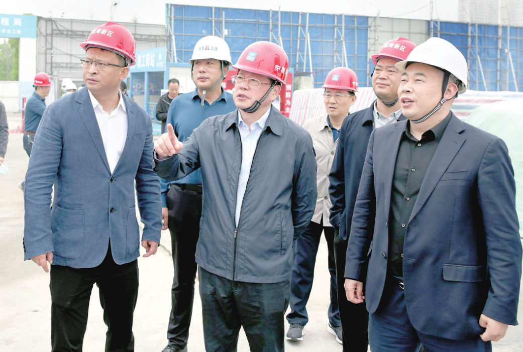 阜陽高鐵站站前廣場(chǎng)總投資約27.7億元,總建筑面積17萬余平方米,建設(shè)內(nèi)容包括總長(zhǎng)16.8千米集散道路,3.4千米高架落客平臺(tái)及1.2千米航潁路下穿隧道,5.2萬平方米站前景觀廣場(chǎng),軌道1、4號(hào)線站廳及站臺(tái)、地下停車場(chǎng)、地下商業(yè)、下沉廣場(chǎng)及其他附屬工程,汽車客運(yùn)西站及公交場(chǎng)站等。目前主體工程已完成約79%,地下空間預(yù)計(jì)11月底完工。在項(xiàng)目現(xiàn)場(chǎng),楊光榮仔細(xì)詢問各個(gè)子工程進(jìn)展、施工組織等情況,要求施工單位搶抓當(dāng)前有利時(shí)機(jī),集中人力物力,在確保安全和質(zhì)量的前提下,加快施工進(jìn)度,確保按當(dāng)前確定的工期完成建設(shè)。