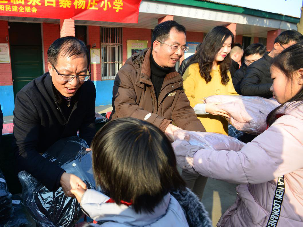 涓涓溪流,匯成大海。在余英國(guó)的積極推動(dòng)下,2019年,愛(ài)心人士牛利民捐款2500元,幫助楊莊村大洪莊學(xué)子王合雨;阜陽(yáng)市企聯(lián)會(huì)為大蒲莊患病去世貧困戶(hù)張國(guó)麗家孩子買(mǎi)了新衣服,同時(shí)捐款5000元,用于孩子的求學(xué)……