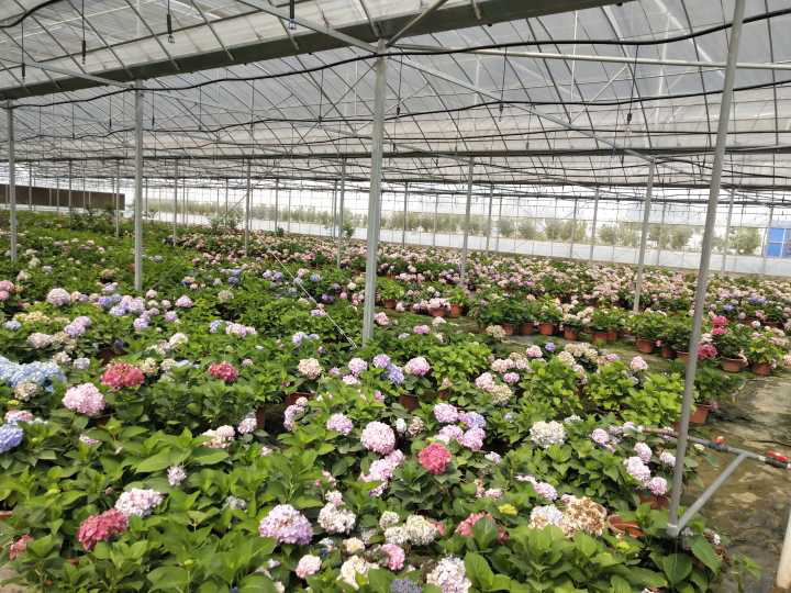 說干就干,但花卉扶貧產業(yè)在潁州區(qū)是首例,摸著石頭過河異常艱辛,工作隊面對基礎差、管理弱、技術缺、渠道不通的重重困難以及發(fā)展農業(yè)的天然風險,沒有退縮,聚焦“五點”,穩(wěn)步前行。一是加大投入強硬件,省市場監(jiān)督管理局(原省工商局)投入資金90萬元,區(qū)鎮(zhèn)財政共投入125萬元,通過公開招標分兩期建成現(xiàn)代化標準化連棟溫控大棚4座(每期2座),占地13184平方米。二是成立公司強管理,工作隊和村兩委堅持市場化、規(guī)范化,成立村創(chuàng)業(yè)經濟服務公司,強化經營管理和公司內部管理,建立財務制度和人員考勤管理制度,公司賬目聘請專人管理。三是市場導向強經營,與阜陽花卉產業(yè)龍頭企業(yè)陽光花卉所屬夏宇花卉行簽訂合作協(xié)議,夏宇花卉負責技術指導、市場營銷、經營管理,利潤按比例分成。研究市場需求,選準優(yōu)質品種,主打八仙花、歐洲月季,輔以石竹、紅楓、絡石等優(yōu)質花卉,銷售前景良好,在阜陽本地及周邊市場打響了知名度。四是筑巢引鳳強規(guī)模,引進青青園林等七家公司總投資500萬發(fā)展精品花卉苗木產業(yè)園,在全村共占地700余畝,花卉產業(yè)初步產生集聚效應,“一村一品”建設基本完成。五是多措并舉強帶貧,一方面通過產業(yè)提升、就業(yè)帶動、土地流轉、技術培訓等手段帶動貧困戶增收、掌握勞動技能;一方面確保村集體經濟持續(xù)壯大,目前,產業(yè)帶動貧困戶增收10余萬元,村集體經濟收入逾54萬元。