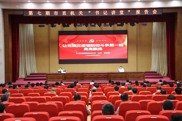 5月28日上午,市直工委在市委黨校1號(hào)報(bào)告廳舉辦了第七期市直機(jī)關(guān)“書記講堂”報(bào)告會(huì)。市衛(wèi)生健康委黨組書記、主任吳榮濤做了題為《讓黨旗在疫情防控斗爭(zhēng)第一線高高飄揚(yáng)》的報(bào)告,市直工委書記李濤主持報(bào)告會(huì)。市直各直屬黨組織書記或副書記、市衛(wèi)生健康系統(tǒng)黨支部書記、市委黨校主題班學(xué)員、市直機(jī)關(guān)理論宣講員260余人參加了報(bào)告會(huì)。