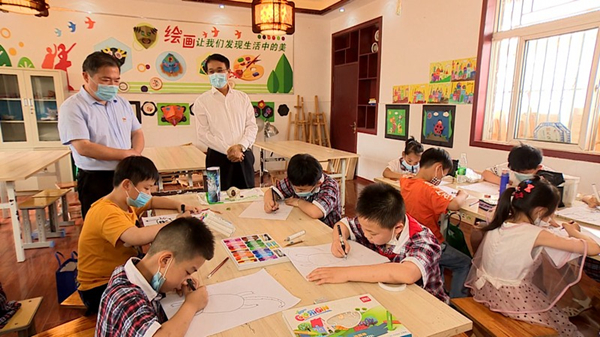 今天是星期六,在潁上縣慎城鎮(zhèn)第二小學少年宮圖書閱覽室、音樂舞蹈室、書畫創(chuàng)作室聚集了許多自發(fā)前來看書和練習才藝的小學生。黃琦一一走進室內(nèi),實地查看學校圖書配備情況,觀賞孩子們排練的舞蹈、練習的書法以及繪畫作品,并與老師們親切交談,了解學校教育教學工作開展和學生學習、生活等方面情況。黃琦指出,學校要始終堅持黨的教育方針,堅持以人為本、因材施教,著力培養(yǎng)學生的創(chuàng)新精神和動手實踐能力,促進學生德智體美勞全面發(fā)展。