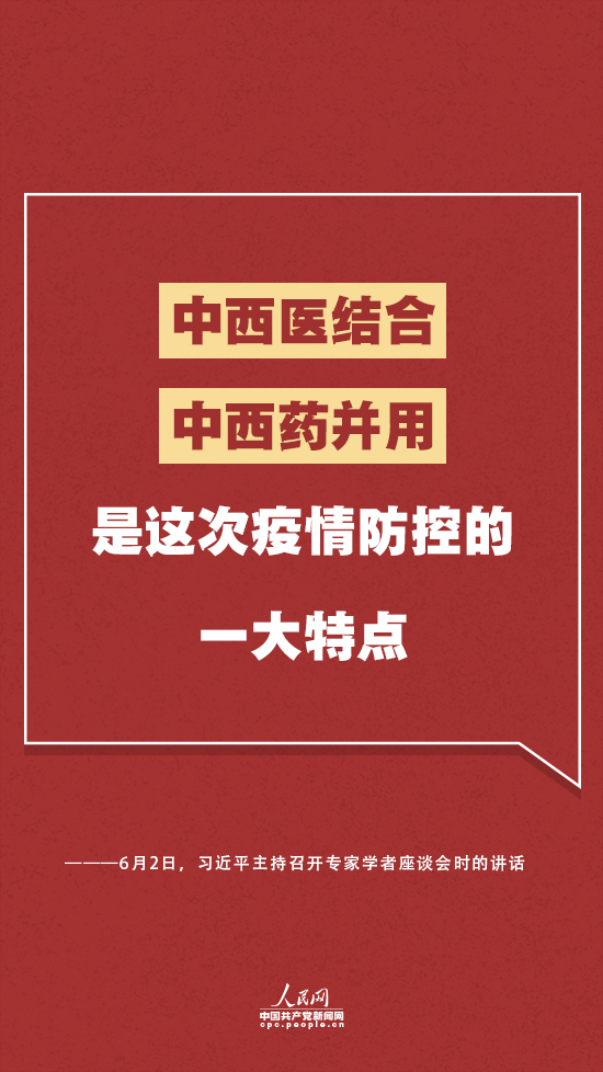 在座談會(huì)上,習(xí)近平指出,中西醫(yī)結(jié)合、中西藥并用,是這次疫情防控的一大特點(diǎn),也是中醫(yī)藥傳承精華、守正創(chuàng)新的生動(dòng)實(shí)踐。要加強(qiáng)古典醫(yī)籍精華的梳理和挖掘,建設(shè)一批科研支撐平臺(tái)。要加強(qiáng)中醫(yī)藥服務(wù)體系建設(shè),提高中醫(yī)院應(yīng)急和救治能力。要強(qiáng)化中醫(yī)藥特色人才建設(shè),打造一支高水平的國(guó)家中醫(yī)疫病防治隊(duì)伍。要推動(dòng)中西醫(yī)藥相互補(bǔ)充、協(xié)調(diào)發(fā)展。