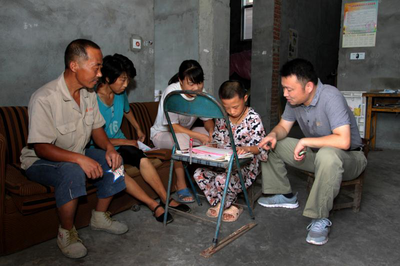 ●顏亮亮入戶走訪貧困戶,幫助輔導(dǎo)貧困家庭子女