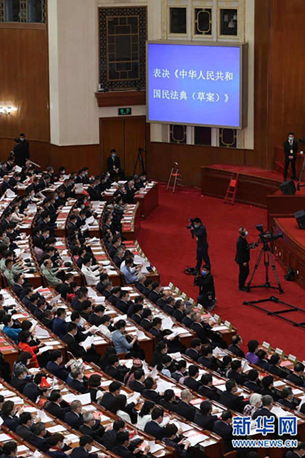 十三屆全國(guó)人大三次會(huì)議以2879票贊成、2票反對(duì)、5票棄權(quán),高票表決通過(guò)《中華人民共和國(guó)民法典》,熱烈的掌聲,在萬(wàn)人大禮堂久久回蕩。