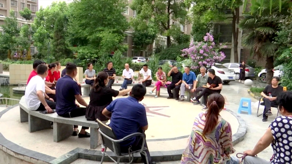 傍晚時分潁州區(qū)七里鋪社區(qū)新天地小區(qū)居民吃過晚飯三三兩兩來到的小區(qū)的廣場上參加街道社區(qū)組織的“夜話活動”
