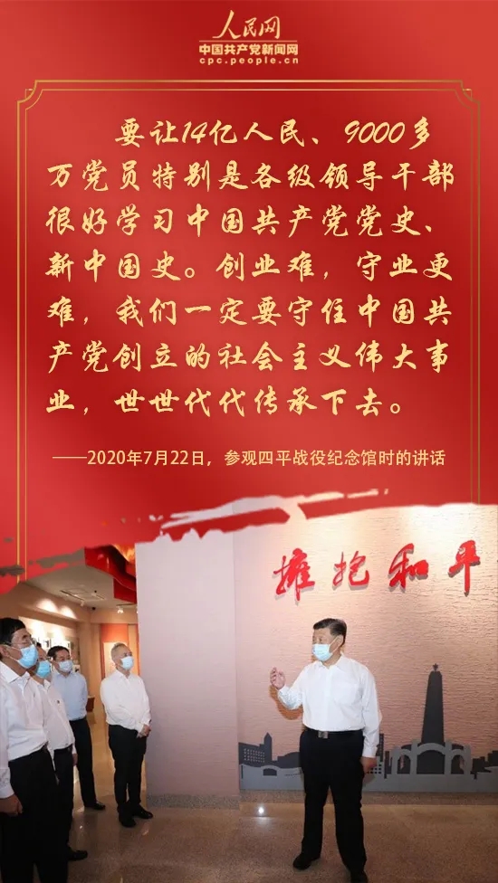7月22日下午,正在吉林省考察調(diào)研的習(xí)近平總書記參觀了四平戰(zhàn)役紀(jì)念館,他感慨地說,我們從八一南昌起義到井岡山斗爭,從艱苦卓絕的長征、抗日戰(zhàn)爭,再到解放戰(zhàn)爭、抗美援朝,是革命烈士的鮮血鑄就了革命成功,我們一定要牢記新中國來之不易。