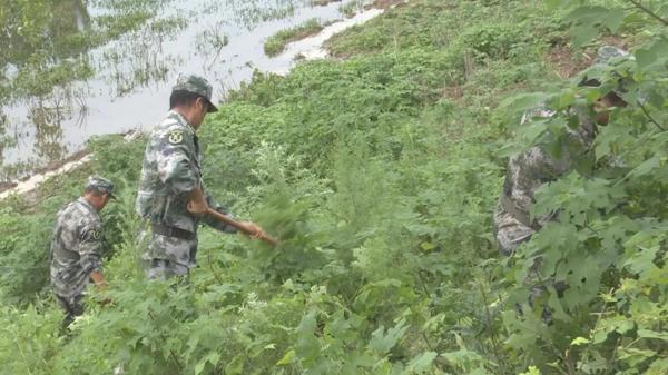 在潁上縣半崗鎮(zhèn)廟口社區(qū)河段的堤壩上,馳援的民兵們正在緊張的忙碌著。自7月26日到達(dá)以來,他們就肩負(fù)起了該河段堤壩的巡險及清障任務(wù)。他們始終堅守初心,堅決做到“退伍不褪色,離軍不離黨”,以飽滿的工作熱情,頑強的戰(zhàn)斗作風(fēng),堅決完成此次任務(wù),給黨和人民交一份合格的答卷。