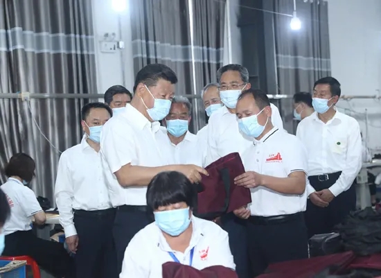 第二站,習(xí)近平來到紅亮箱包有限公司。