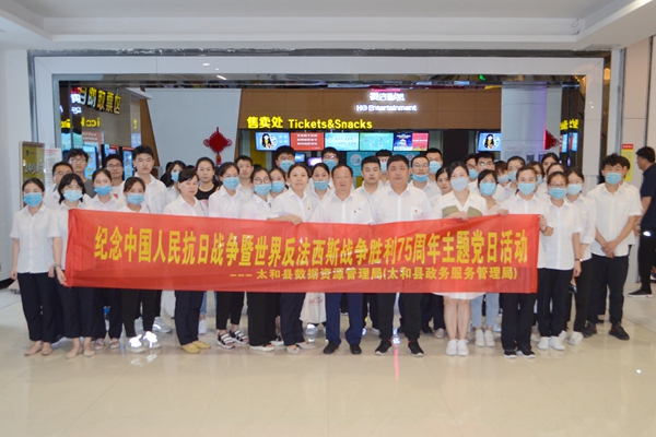 為進(jìn)一步鞏固“不忘初心、牢記使命”主題教育成果,激發(fā)愛國主義熱情,弘揚(yáng)愛國主義精神,紀(jì)念中國人民抗日戰(zhàn)爭暨世界反法西斯戰(zhàn)爭勝利75周年。9月3日,太和縣數(shù)據(jù)資源管理局開展不一樣的黨員活動(dòng)日,組織全體工作人員集中觀看愛國主義電影《八佰》。