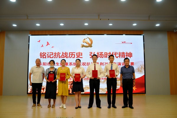 本次演講比賽以“銘記抗戰(zhàn)歷史 弘揚(yáng)時代精神”為主題。演講過程中,選手們圍繞時刻銘記歷史,傳承紅色基因,開創(chuàng)美好未來的主題,他們精神飽滿、慷慨激昂,用大量事例地回顧了那段飽受欺凌、不堪回首的近代史,重溫了抗日戰(zhàn)爭的光榮歷史,列舉了一個個英雄的故事,以緬懷抗戰(zhàn)先烈的豐功偉績,弘揚(yáng)偉大民族精神,謳歌中國共產(chǎn)黨在民族解放和實(shí)現(xiàn)民族偉大復(fù)興中艱苦卓絕、氣壯山河的奮斗歷程。選手們激情四射的演講表現(xiàn)感染人心、催人奮進(jìn),他們豐富的情感流露和精彩的演講技藝不時贏得陣陣熱烈掌聲。經(jīng)過激烈的角逐,太和縣中醫(yī)院推送的選手李小林和她的三年級女兒一起,以《沿著先輩足跡、承載時代夢想》為主軸,緊扣活動主題,表現(xiàn)形式新穎,語言組織巧妙,情感表達(dá)豐富,最終贏得一等獎,市三院、市婦女兒童醫(yī)院、界首市人民醫(yī)院的選手分獲二等獎,市疾控中心、潁上縣人民醫(yī)院等5家單位推送的選手分獲三等獎。