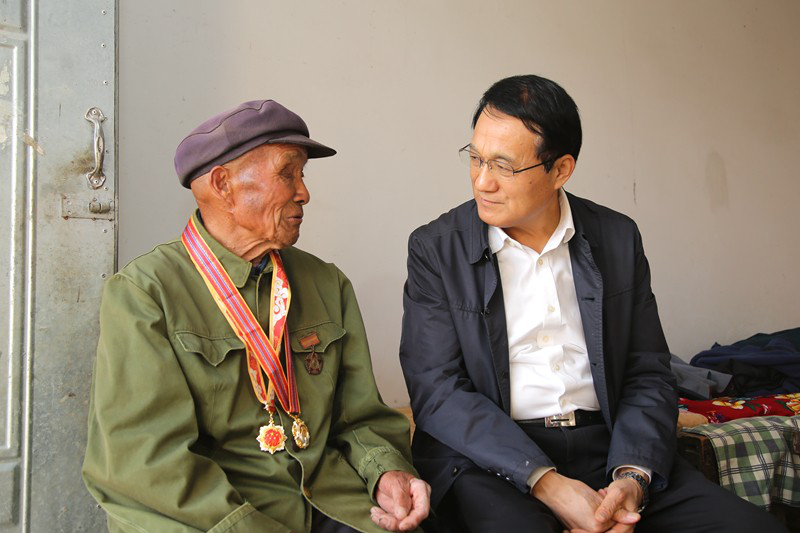今年是中國(guó)人民志愿軍抗美援朝出國(guó)作戰(zhàn)70周年。調(diào)研期間,黃琦一行先后看望慰問(wèn)了潁上縣耿棚鎮(zhèn)抗美援朝志愿軍老戰(zhàn)士張永欽和楊延年,和他們面對(duì)面交流,代表潁上縣委、縣政府向他們致以崇高敬意和親切問(wèn)候,給他們佩戴“中國(guó)人民志愿軍抗美援朝出國(guó)作戰(zhàn)70周年紀(jì)念章”。黃琦說(shuō),70年前的抗美援朝戰(zhàn)爭(zhēng),中國(guó)人民志愿軍以大無(wú)畏的英雄氣概,譜寫了氣壯山河的英雄贊歌、打出了中國(guó)國(guó)威和人民軍隊(duì)軍威,偉大的抗美援朝精神是值得世代傳承弘揚(yáng)的寶貴財(cái)富。黃琦要求,潁上縣各級(jí)各部門要深入學(xué)習(xí)貫徹習(xí)近平總書記在紀(jì)念中國(guó)人民志愿軍抗美援朝出國(guó)作戰(zhàn)70周年大會(huì)上重要講話精神,銘記偉大勝利,捍衛(wèi)和平正義,永續(xù)傳承、發(fā)揚(yáng)偉大的抗美援朝精神;要時(shí)刻關(guān)心抗美援朝志愿軍老戰(zhàn)士的身體健康狀況和日常生活情況,妥善安排好他們的醫(yī)療服務(wù)和生活保障工作,讓他們?cè)邳h和政府的關(guān)懷下安享晚年、幸福生活。