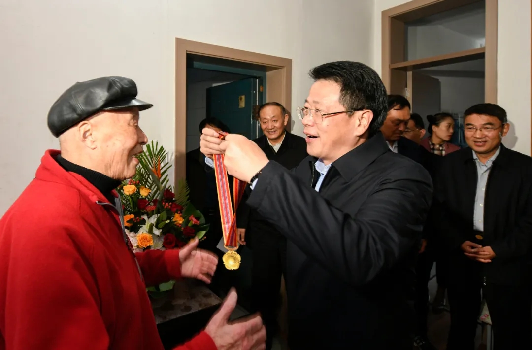 在中國人民志愿軍抗美援朝出國作戰(zhàn)70周年之際,10月26日,副省長(zhǎng)、市委書記楊光榮專程走訪慰問部分抗美援朝志愿軍老戰(zhàn)士,并向他們頒發(fā)“中國人民志愿軍抗美援朝出國作戰(zhàn)70周年”紀(jì)念章,代表市委、市政府向全市所有健在的志愿軍老戰(zhàn)士、老同志致以崇高敬意和親切問候。