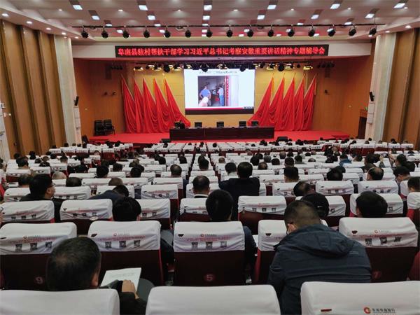 10月30日,阜南縣駐村幫扶干部學(xué)習(xí)習(xí)近平總書記考察安徽重要講話精神專題輔導(dǎo)會在縣委黨校報告廳召開,縣委講師組組長潘永力,縣城管局工會副主席、原駐曹集鎮(zhèn)利民村西田坡臨時黨支部書記陳曉亮作專題輔導(dǎo),全縣300余名駐村幫扶干部參加會議。