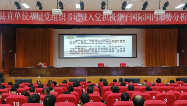 為進(jìn)一步深入學(xué)習(xí)黨的十九屆五中全會(huì)精神,引導(dǎo)黨員干部更加深刻領(lǐng)會(huì)和把握全會(huì)精神和內(nèi)涵,臨泉縣直機(jī)關(guān)工委于11月18日至11月19日在縣委會(huì)議中心二樓報(bào)告廳舉辦了國(guó)際國(guó)內(nèi)形勢(shì)分析報(bào)告會(huì),縣直單位基層黨組織書(shū)記暨入黨積極分子600余人聆聽(tīng)了報(bào)告會(huì)。