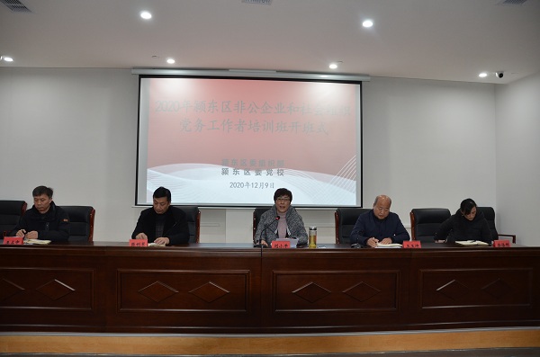 12月9日至11日,潁東區(qū)委組織部、區(qū)委非公工委在區(qū)委黨校舉辦全區(qū)非公企業(yè)和社會(huì)組織黨務(wù)工作者培訓(xùn)班。全區(qū)非公企業(yè)和社會(huì)組織黨建指導(dǎo)員及黨務(wù)工作者共計(jì)110余人參加學(xué)習(xí)。區(qū)委常委、組織部長(zhǎng)劉小平做開(kāi)班動(dòng)員講話(huà),常務(wù)副部長(zhǎng)、非公工委書(shū)記王玉坤主持開(kāi)班儀式。