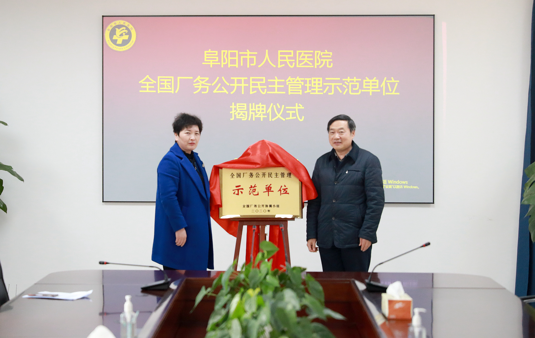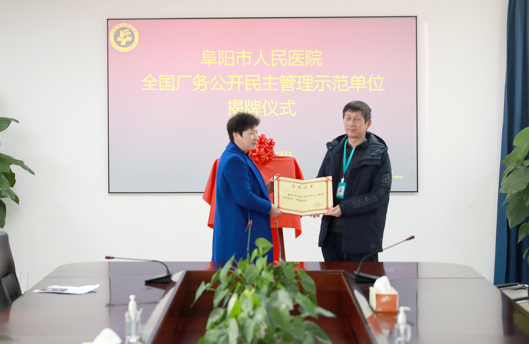 日前,全國(guó)廠務(wù)公開(kāi)協(xié)調(diào)小組召開(kāi)全國(guó)廠務(wù)公開(kāi)民主管理工作經(jīng)驗(yàn)交流暨先進(jìn)單位表彰電視電話會(huì)議。會(huì)上,對(duì)400家榮獲全國(guó)廠務(wù)公開(kāi)民主管理先進(jìn)單位和100個(gè)榮獲全國(guó)廠務(wù)公開(kāi)民主管理示范單位進(jìn)行表彰,阜陽(yáng)市人民醫(yī)院被授予“全國(guó)廠務(wù)公開(kāi)民主管理示范單位”榮譽(yù)稱(chēng)號(hào)。安徽省僅3家單位獲此殊榮,實(shí)屬難得。