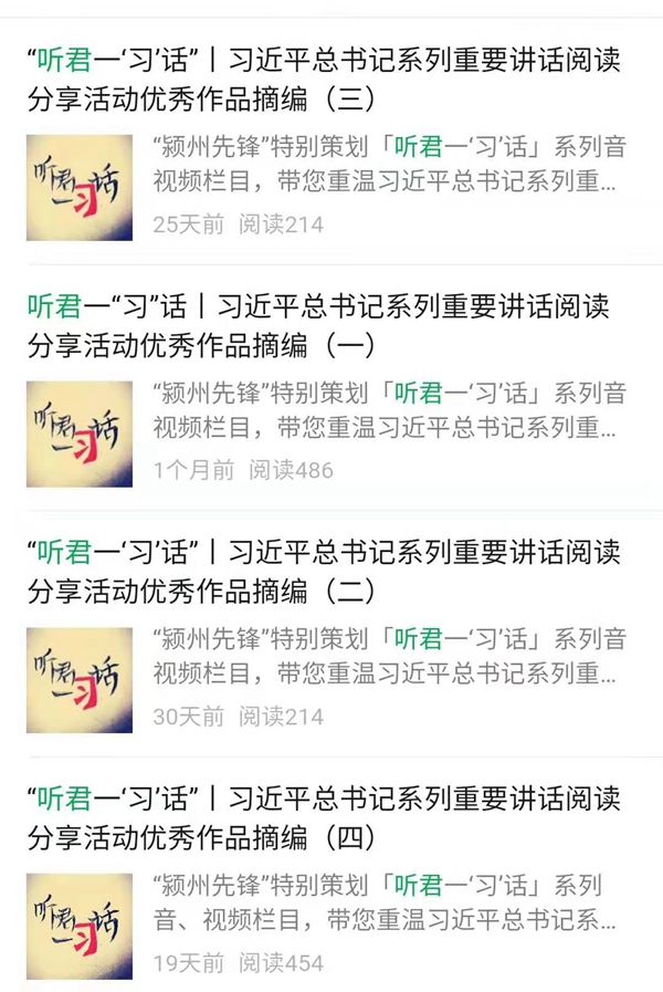二、主動(dòng)作為,創(chuàng)造黨員教育新功能。潁州區(qū)黨員電教中心依托“潁州先鋒”微信公眾號(hào)為龍頭引領(lǐng)帶動(dòng),融合黨建資訊、整合理論知識(shí)、宣傳風(fēng)采典型,以其大信息容量、及時(shí)性信息服務(wù)、互動(dòng)性交流指導(dǎo),成為黨員隨身攜帶的大腦“加油站”。特別開(kāi)設(shè)“先鋒有聲”、“潁小非課堂”、“聽(tīng)君一習(xí)話”、“學(xué)而時(shí)習(xí)之”等黨建專欄,內(nèi)容覆蓋全領(lǐng)域黨建,兼具報(bào)道速度與深度,聚焦熱點(diǎn)、分類編發(fā),對(duì)其他平臺(tái)持續(xù)引流并相互促進(jìn)。