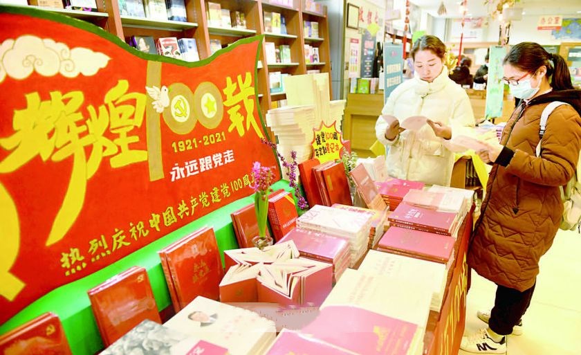 今年是中國共產(chǎn)黨成立100周年,黨中央在全黨部署開展黨史學(xué)習(xí)教育。連日來,我市書店陸續(xù)開設(shè)“奮斗百年路啟航新征程”慶祝中國共產(chǎn)黨成立100周年主題出版物專柜專區(qū),深受讀者青睞。