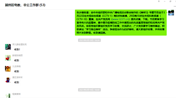 二是多項措施保障學(xué)習(xí)。及時與區(qū)電信部門溝通,保障各遠(yuǎn)程站點(diǎn)網(wǎng)絡(luò)暢通。要求各黨組織在微信群及時報送學(xué)習(xí)情況,圖文并茂,形成了比學(xué)趕超的濃厚氛圍。要求全區(qū)24個遠(yuǎn)教文化廣場通過滾屏公布播出時間,方便黨員干部收看。