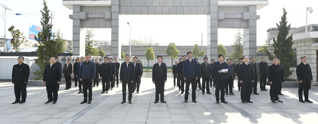 仲春的臨泉縣烈士陵園,日暖風(fēng)熏,翠柏靜默。當(dāng)天上午,楊光榮一行首先來(lái)到這里,在革命烈士紀(jì)念碑正前方肅立,舉行向革命烈士敬獻(xiàn)花籃、重溫入黨誓詞儀式。